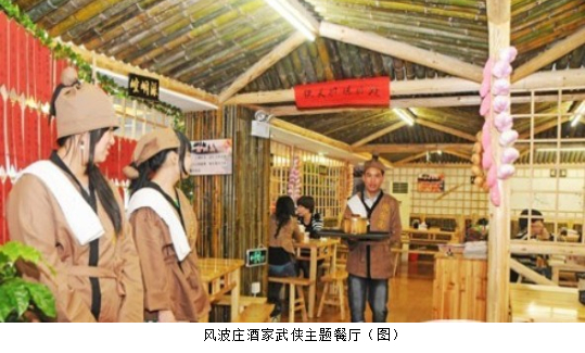 [摘要] 昆陽鎮(zhèn)萬聯(lián)路有一家“武俠餐廳”,餐廳名叫“風(fēng)波莊酒家”,從裝修、菜單、店員裝束甚至店員,對客人的稱呼都充滿了武俠氣息。開業(yè)一個多星期,這家餐廳吸引了不少顧客。