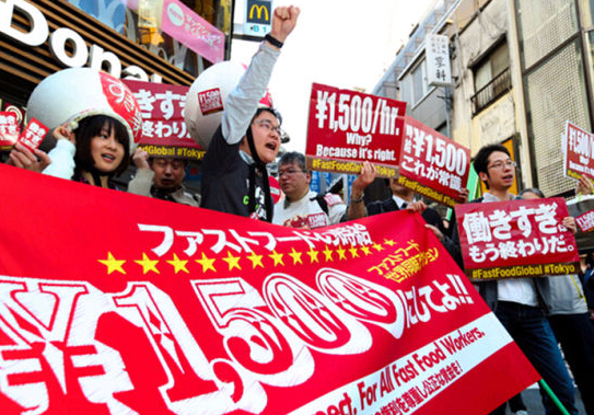 日本快餐業(yè)員工鬧市游行 要求上調(diào)最低時(shí)薪