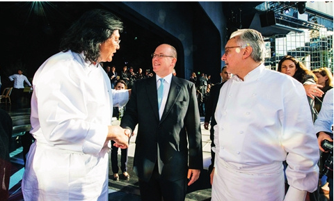 2012年11月的某一天,摩納哥路易十五餐廳里聚集了240位來自世界各地的名廚,這些廚師總共擁有300顆米其林星星,全部是擁有著“世界御廚”美譽的法國頂級大廚Alain Ducasse的邀請,來參加Alain Ducasse集團(tuán)25周年慶典。大董是其中唯一一位華人廚師,合影時主辦方特意將他安排在最前排。