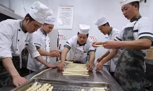 “鐺鐺……”清晨4時,鬧鈴響過后,司務長丁紅從床上彈了起來,他邊穿衣服邊喊著“起床”的口令。炊事班的一天就這樣開始了,有的同志整理內(nèi)務,有的同志“占領”廁所,有的同志搶占洗漱臺。4時15分,準時開火,炊事操作間內(nèi),8名穿著炊事服的身影開始忙起來。