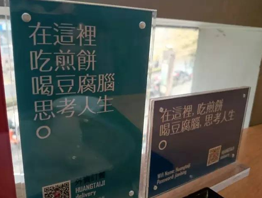 如今在黃太吉的煎餅店里你也能做。因?yàn)樗辉偈锹愤厰偅辉偈桥K亂差的街邊小店,顧客還饒有興致地做了詩描述: