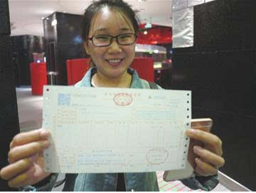 來青旅游的威海女士丁風(fēng)菊在海底撈取得首張營改增擴(kuò)圍后的餐飲業(yè)發(fā)票。