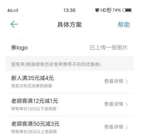 對(duì)新顧客,會(huì)按照餐廳的人均消費(fèi),以及餐廳的預(yù)算,進(jìn)行滿減,對(duì)老顧客則會(huì)根據(jù)他的消費(fèi)記錄,給他發(fā)放合適的代金券,不會(huì)因?yàn)榇鹑瘽M減的門檻太高,或優(yōu)惠力度太小,而讓代金券成為廢紙、形成營(yíng)銷誤傷,還能根據(jù)情況給出拉復(fù)購(gòu)的方案。