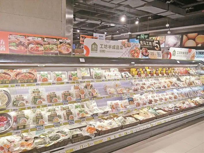 近日,實地走訪多家線下連鎖商超時看到,預(yù)制菜產(chǎn)品琳瑯滿目,不少市民前來選購。