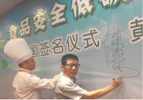7月10號晚,“當(dāng)代四大名廚”陳緒榮在湖北黃石陽新舉行了盛大的收徒儀式!收徒儀式由大冶市烹飪餐飲業(yè)協(xié)會常務(wù)副會長兼秘書長羅文主持,黃石市烹飪餐飲業(yè)協(xié)會和大冶市烹飪餐飲業(yè)協(xié)會的眾多嘉賓到場祝賀,北京、江西和武漢等地的弟子專程前來賀喜。首先,我號召同行承諾推廣綠色食材和綠色烹飪的“生態(tài)宴”,并在“食品安全低碳環(huán)保‘生態(tài)宴’”簽名墻上簽字,大家踴躍寫上自己的名字;隨后,收徒儀式以傳統(tǒng)的拜師形式舉行,按跪拜、敬茶、頒發(fā)證書和合影等程序進行;最后,嘉賓和弟子登臺發(fā)表致辭。