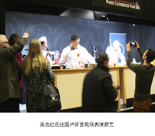 作為組委會(huì)應(yīng)邀唯一代表中國(guó)參加此次盛會(huì)的中國(guó)寧夏廚師吳志紅,向世界各地的來(lái)賓表演了中國(guó)清真美食,他克服了使用西餐用具及電磁爐不習(xí)慣的困難,在法國(guó)藍(lán)帶廚藝學(xué)院的學(xué)員配合下圓滿完成了這次表演,制作的翡翠魚(yú)花受到觀眾的熱烈歡迎,他以高超的技藝征服了世界各地的美食愛(ài)好者,受到了評(píng)委會(huì)主席愛(ài)德華?君度先生的高度評(píng)價(jià)。據(jù)悉,代表中國(guó)的美食圖書(shū)《舌尖上的中國(guó)》也獲得了這次大獎(jiǎng)賽的獎(jiǎng)項(xiàng)。