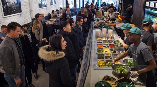Sweetgreen只是美國(guó)快捷休閑式連鎖餐廳的一個(gè)典型代表,總部位于紐約的Dig Inn和加州的Tender Greens也都屬于這類(lèi)餐廳。它們提倡慢食,向健康意識(shí)普遍增強(qiáng)的客戶提供選用本地食材做出的菜品。它們從本地農(nóng)戶那里采購(gòu)大部分食材,每個(gè)餐館都要在當(dāng)天準(zhǔn)備出所需的材料。雖然客戶也可以點(diǎn)菜單以外的東西,但大多數(shù)人還是從餐館自行設(shè)計(jì)的沙拉菜單中點(diǎn)餐。