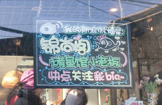 烤魚店開在胡同里,曲徑通幽,但人流量畢竟有限,作為廣告系畢業(yè)生的唐棠如何來推廣宣傳自己呢?唐棠介紹,她開店那會(huì)兒,趕上微博熱,于是她立即注冊(cè)了一個(gè)微博號(hào),用戶名是“錦尚閣烤魚館小老板”,并附上自己的訂餐電話。在微博里,她每天勤勤懇懇地更新,內(nèi)容不全是店里的廣告,而是很多開店的趣事以及自己的生活片段,比如有一條微博是這樣寫的:“員工因家鄉(xiāng)不同,一會(huì)兒有離職要去收麥子的,一會(huì)兒有離職要去敲松子的,一會(huì)兒又有要回家收玉米的……導(dǎo)致我現(xiàn)在對(duì)農(nóng)廣天地的收獲時(shí)段了如指掌”;“來了一個(gè)帥得飛起來的男孩兒,女服務(wù)員們都瘋起來、爭(zhēng)著要服務(wù)這一桌,我批評(píng)了她們:服務(wù)行業(yè)怎么能失態(tài)不淡定!怎么能區(qū)別對(duì)待!你們知不知道,店是我的,你們是我的,好看的男客人也是我的!這桌我來服務(wù),你們都忙別的去吧……”這些詼諧有趣的情節(jié)以及老板的美照俘獲了眾多同齡人的心,目前她的微博共吸引了5000多名粉絲。唐棠說:“只要勤更新,微博的宣傳效果的確非常顯著而且很持久,開店沒多久,粉絲們就源源不斷地上門來品嘗烤魚,有很多人成了小店的回頭客。到現(xiàn)在,我的新浪微博名字一直寫在小黑板上,掛在店外,來回經(jīng)過的路人有時(shí)候也忍不住好奇心關(guān)注我的微博,變成潛在客戶!