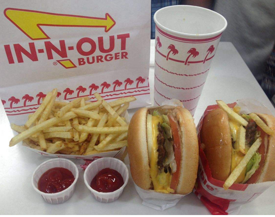 因?yàn)閮扇司τ邢,所以菜單簡單的不?huì)犯選擇困難癥。菜單上只有三種漢堡:普通漢堡、芝士漢堡、雙層漢堡,加上薯?xiàng)l、奶昔和幾種飲料,菜單70年來幾乎沒變化。分店之所以大部分在加州,因?yàn)殡x兩個(gè)總后勤近,美國其他地方都嫌遠(yuǎn),表說走出美國走向世界了。