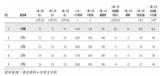 以下為中國五大火鍋餐飲集團(tuán)的數(shù)據(jù)(以總收入計(jì)):