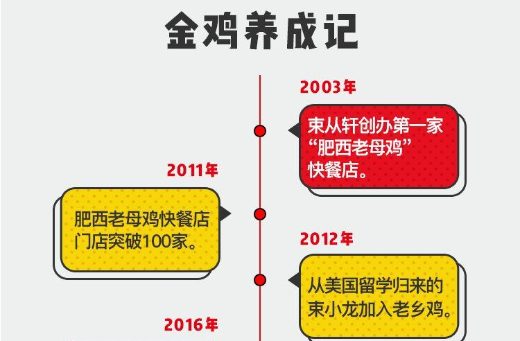 憑借著優(yōu)質(zhì)的產(chǎn)品以及精細化的管理,2011年,肥西老母雞快餐店門店突破100家。2012年,從美國留學歸來的束小龍加入了進來,給企業(yè)注入了新鮮的血液。